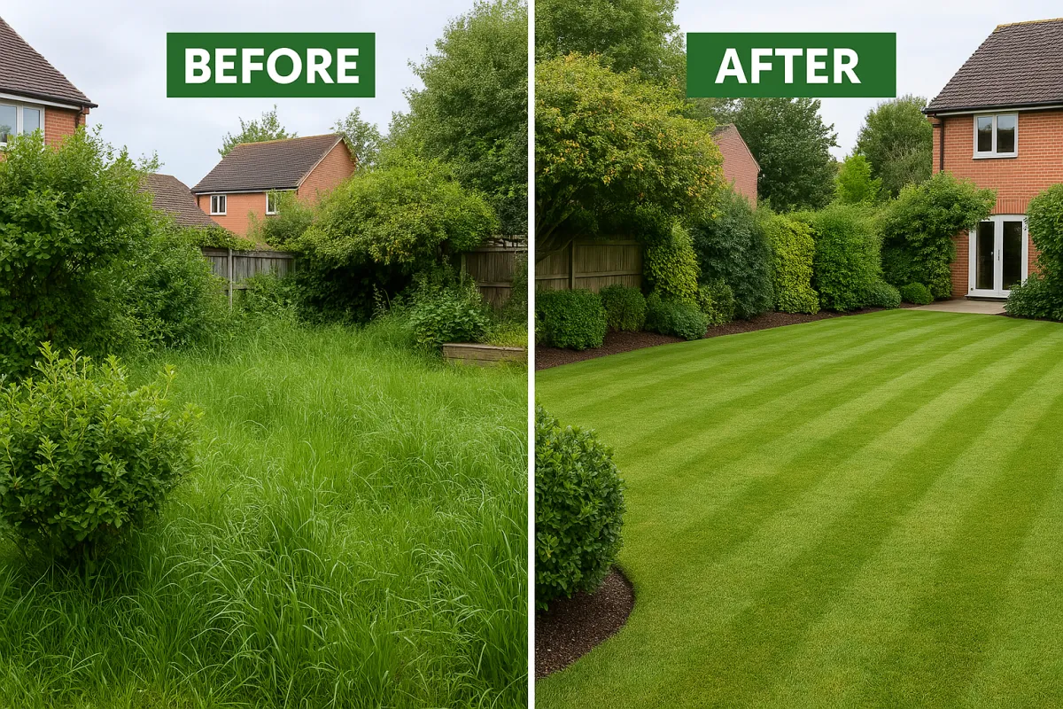 Onderhoud van gazon, heggen knippen en struiken snoeien.